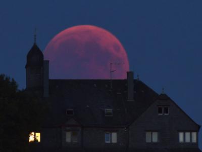 2018年7月27日在德国西部拍摄到的「血月」。全球各地区的人们...