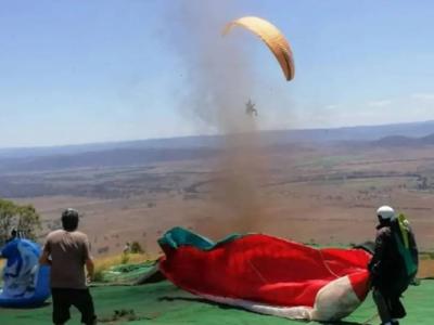 准备出发遇尘卷风 澳洲滑翔降伞爱好者“