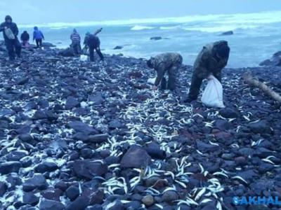 几千条鲱鱼被抛到择捉岛(千岛群岛)岸上