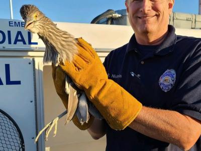 美国内华达州走鹃受困垃圾堆 警员协助成