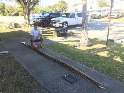 美国佛罗里达州蟒蛇猎人John Hammond在大沼泽地捕获5.5米长大...
