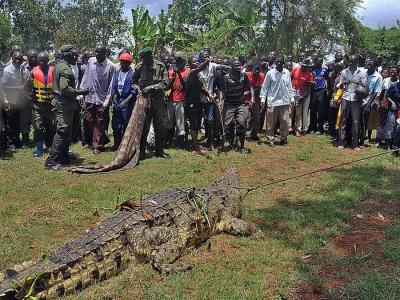 非洲乌干达5公尺长变种巨鳄“本拉登”吃
