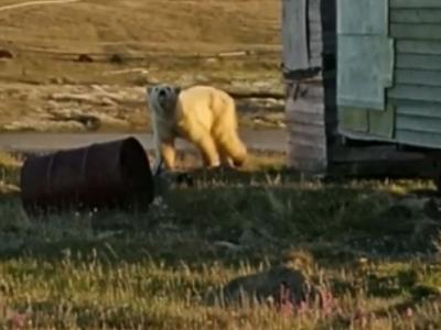 俄罗斯一只嘴里卡着炼乳罐头的北极熊获救