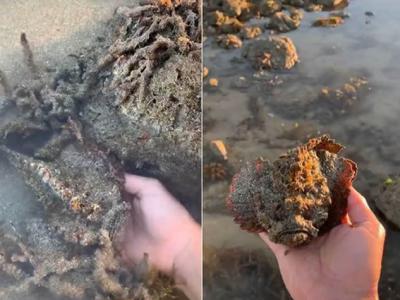澳洲男子海边戏水踩到“怪石” 捞起原来