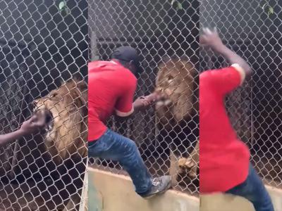 牙买加动物园管理员在游客面前表演戏弄狮子 被狠咬无名指(神秘的地球uux.cn报道)...