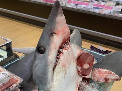 日本超市竟摆放一个货真价实的巨大鲭鲨头
