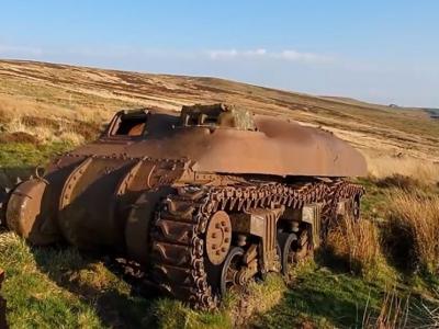 历史学家在英国北部峰区行山期间发现二战时期的加拿大白羊坦克(ram tank)(神秘的...