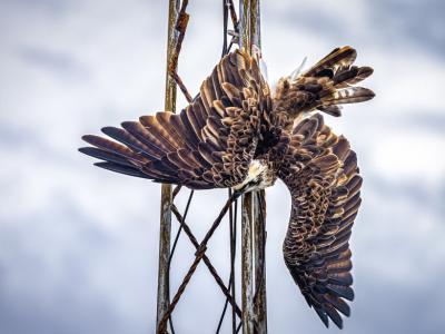 澳洲南澳省稀有东部鱼鹰撞上天线塔被困受