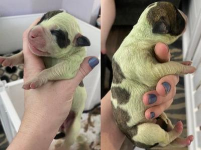 加拿大一只3岁斗牛犬生下8只小狗 其中一只的毛发天生为绿色(神秘的地球uux.cn报道...