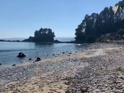 数千条死鱼被冲上智利海滩