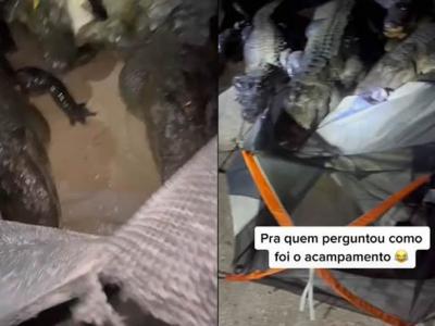 巴西男子野外露营 被鳄鱼大军摧毁帐篷