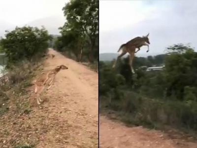 印度环保组织WildLense生态基金会在推特分享影片:野鹿一跃比乔丹还厉害(神秘的地...