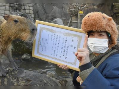 日本动物园举行第10届“水豚最长泡温泉时