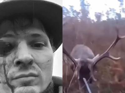 巨大野鹿冲过来鹿角直接插进猎人眼睛