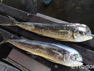 台湾台东成功镇新港渔港渔民捕获一条畸形鬼头刀(正常情况下,鬼头刀的鱼体延长侧扁...