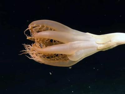 鹦鹉螺号在夏威夷西部约翰斯顿环礁3000公尺海底发现2公尺长Solumbellula海笔(神秘...