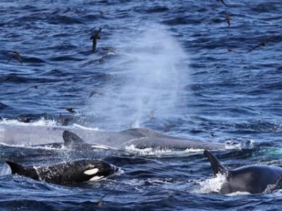 澳洲西海岸16公尺长蓝鲸误闯虎鲸领地 被