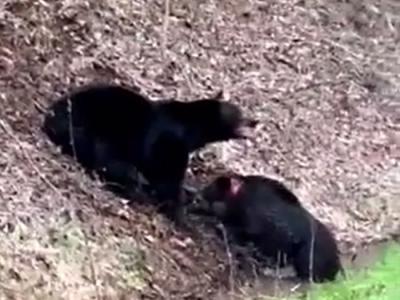 美国田纳西州男子意外目睹黑熊大战野猪的