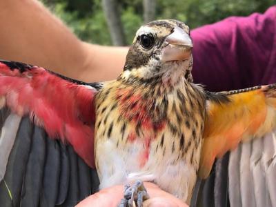 美国宾夕凡尼亚州粉磨坊自然保护区发现罕见雌雄双嵌体“玫胸白斑翅雀”(神秘的地球...