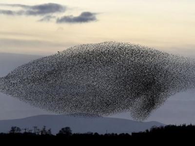 英国苏格兰南部小镇格雷特纳每年都会见到椋鸟大规模迁徙的壮观景象(神秘的地球uux...