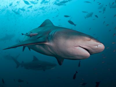 牛鲨和鱼群在斐济贝卡泻湖。(图片来源:uux.cn/Alastair Pollock摄影通过盖蒂图片...