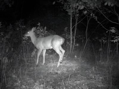 一架远程相机在密歇根州下半岛北部植被较高的地区拍摄到一只鹿的图像。致谢:uux.cn...