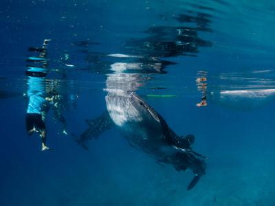 寻求对鲸鲨喂养方式的长期影响的认识。鸣谢:英国海洋研究和保护基金会Gonzalo Arau...