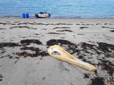 俄罗斯摩尔曼斯克男子在巴伦支海岸边发现不明动物巨型尸骨(神秘的地球uux.cn报道)...