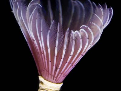 生活在加勒比海的黑斑双旋虫(Bispira melanostigma)。 PHOTOGRAPH BY MICHAEL BO...