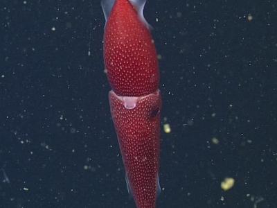 美国加州海洋科学家在725米海底拍到全身红色且布满发光斑点的“士多啤梨鱿鱼”(神...