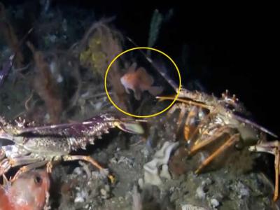澳洲塔斯马尼亚南部海域河床摄影机拍到罕见濒危手鱼(神秘的地球uux.cn报道)据东网...