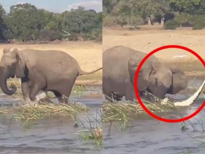赞比亚野生公园母象护儿一脚踩死2.5公尺