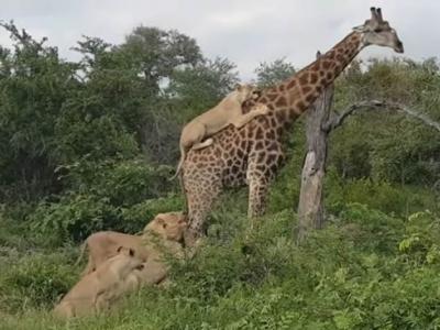 南非克拉西里禁猎区一只长颈鹿的身上挂满狮子 最后仍然成功逃生(神秘的地球uux.cn...