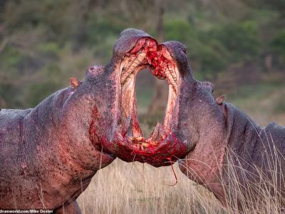 肯尼亚河马浴血奋战抢地盘 其中一只遭尖
