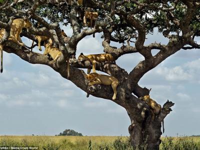 坦桑尼亚塞伦盖蒂国家公园狮子上树避暑,睡得东倒西歪(神秘的地球配图) ...
