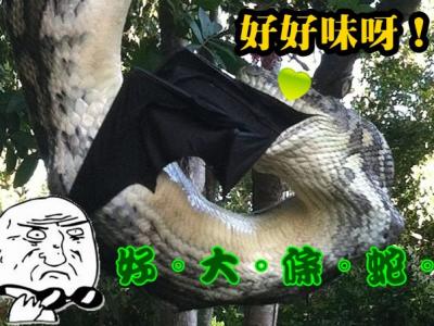 蟒蛇张开血盘大口,把大蝙蝠吞下。 吞呀,吞呀。 虽然蟒蛇吞得有点辛苦,但...