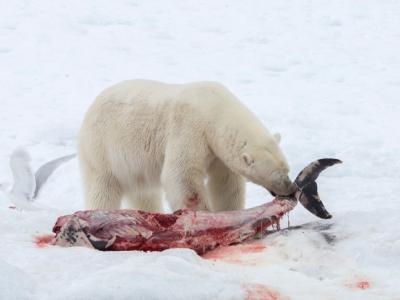北极熊把海豚作为粮食 北极熊食海豚很罕有 北极熊差不多把其中一条海豚吃光...