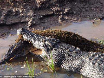 澳洲卡卡杜国家公园小鳄鱼误闯地盘惨遭巨