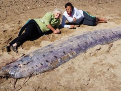 美国洛杉矶圣卡塔利娜岛一条大型皇带鱼尸