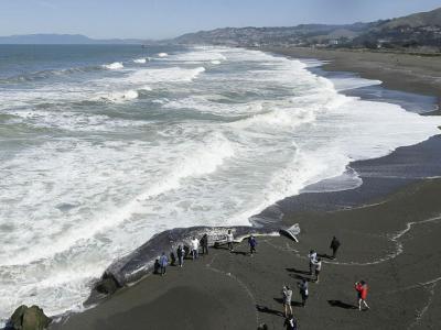 美国加州一只长达15米的抹香鲸被冲上海岸