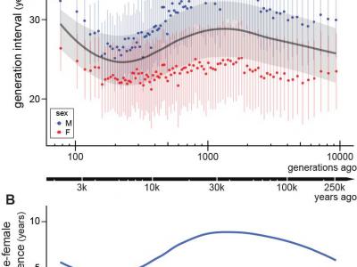 研究表明:过去25万年中人类生育孩子的平均年龄是26.9岁(Credit: Hahn, Wang, et. ...