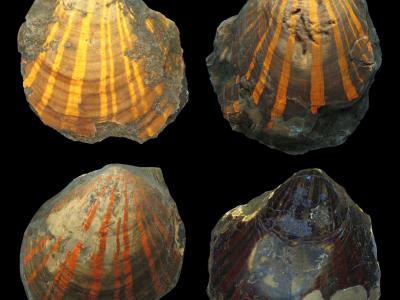 哥廷根大学古生物学家在2.4亿年前的贝壳化石中发现多样性图案扇贝化石Pleuronectit...