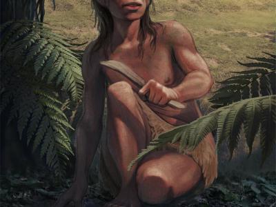 1.4万年前“蒙自人”女性及其生活场景复原图 (昆明动物研究所设计、任文煜绘图;版...