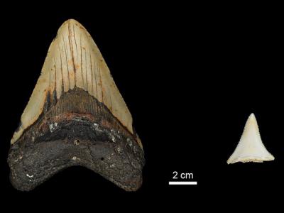 上新世早期巨齿鲨与现代大白鲨的牙齿尺寸对比(图自:MPI / Evolutionary Anthropo...