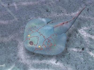 云南曲靖宽甲鱼新材料复原图。杨定华绘云南曲靖宽甲鱼新材料在第一鳃囊内保存了鳃丝...