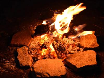 1.5万年前的古人类在夜间围绕火堆进行艺