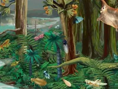 侏罗纪生态复原图。中科院南京地质古生物研究所供图侏罗花蕾化石照片,箭头处为尚埋...