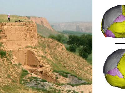 许家窑人遗址(左)及其发现的古人类化石复原头骨(右)。(中科院古脊椎所供图)&...