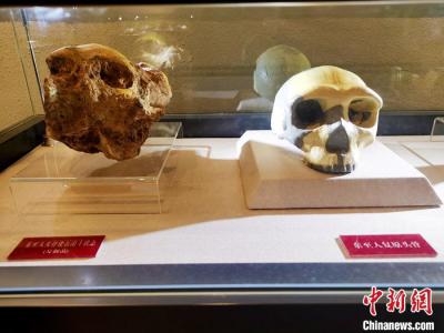 安徽华龙洞遗址陈列馆里展出的“东至人”复原头骨。中新社记者 张强 摄11月30日,相...