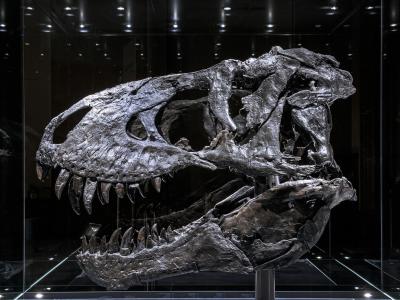 德国研究人员利用CT技术在一只霸王龙下颚化石中发现骨病左侧牙床的含牙部分的CT重建...